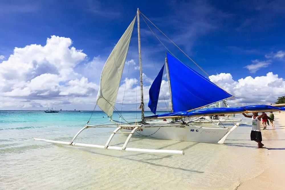 夕阳西下的时候,长滩岛西岸狭长的白沙滩外的海上就飘起一艘艘壮观的“日落风帆”。